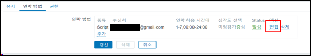 - 아래 그림과 같이 연락 방법을 설정합니다.