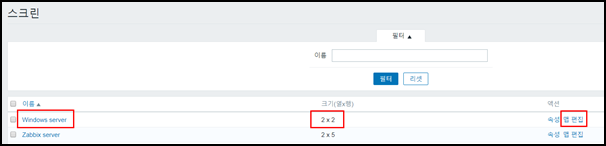 - 다시 스크린 목록에서 설정한 [Windows server] 를 클릭하면 추가한 리소스 테이블이 보인다.
