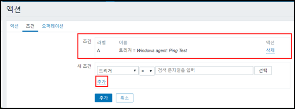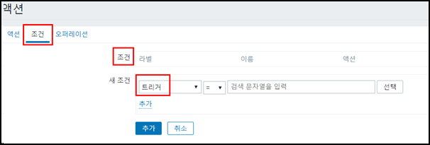 - [선택] 버튼을 누르면 조건에 트리거가 추가됩니다.