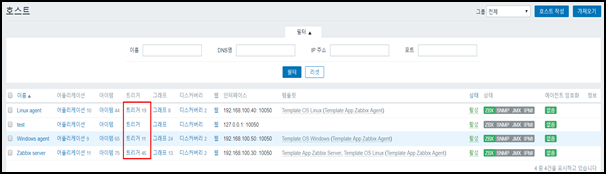 -[설정] → [호스트] → 설정할 호스트의 트리거 클릭