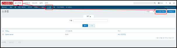 아래 그림과 같이 [모니터링] → [스크린] → [스크린작성] 순으로 클릭해주세요.