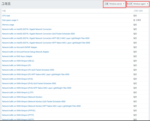 - 먼저 Windows Server를 그래프 형식으로 모니터링 해보겠습니다. [그래프] 를 선택하세요.