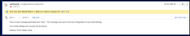 - 아래 그림을 확인하면 지정한 메일 주소에 테스트 메일이 정상적으로 전송된 것을 확인할 수 있다.