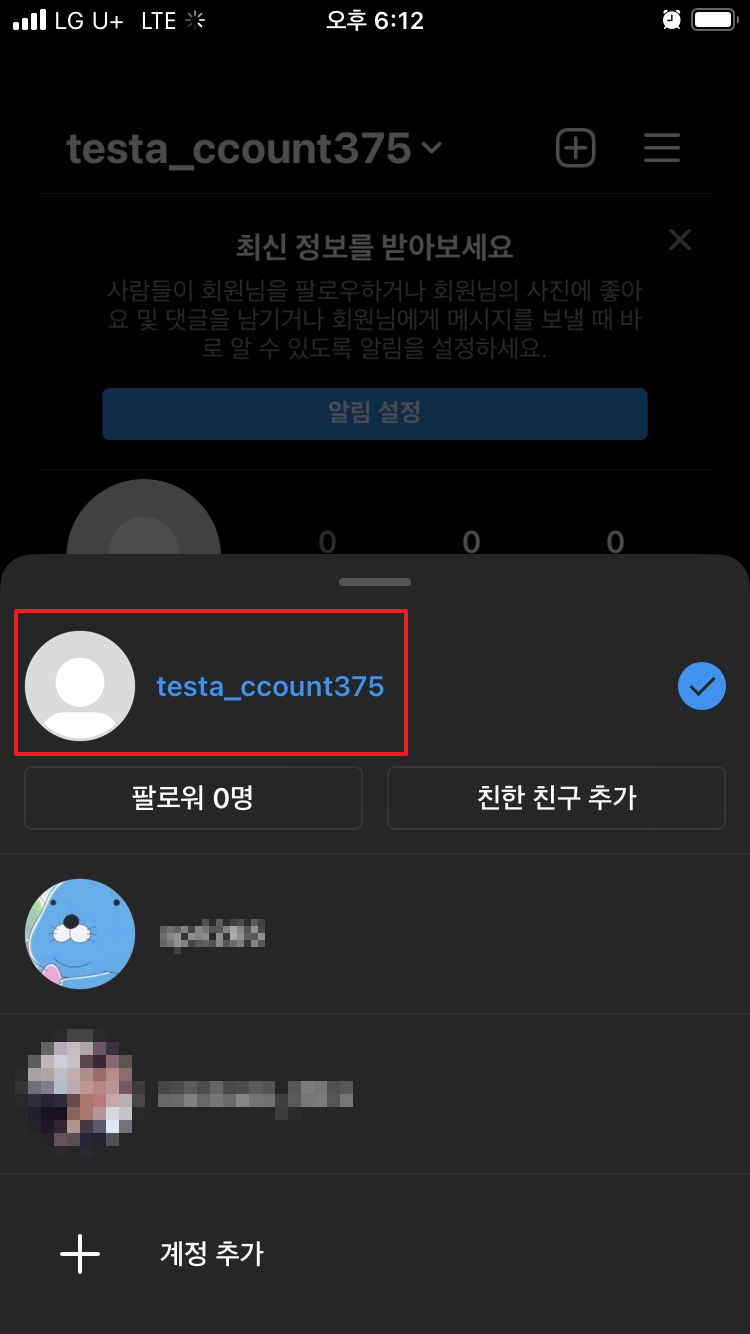 인스타그램 계정 추가하기 완료