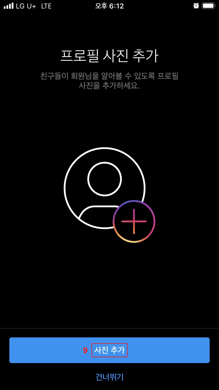 페이스북 연동과 연락처 동기화가 끝나면 마지막으로 프로필 사진을 추가하시면 됩니다.