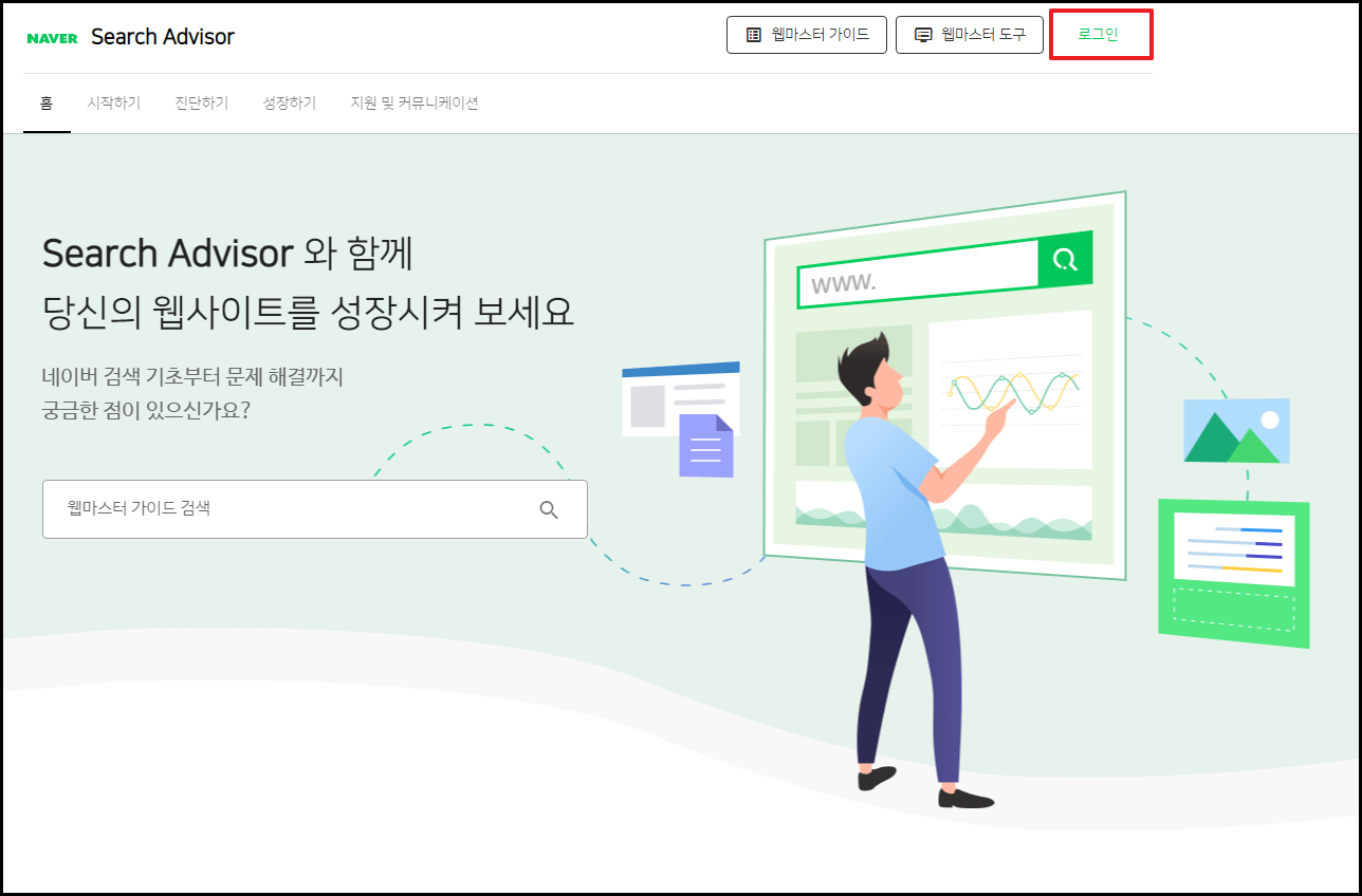 '웹마스터 도구' 에 접속하면 바로 사이트 등록이 가능한 화면이 출력됩니다.