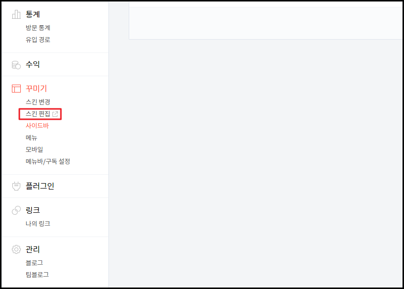 사이트맵 주소는 티스토리 블로그의 [관리] -> [블로그] 탭에서 확인이 가능합니다. 티스토리에서 사이트맵 주소를 제공하기 때문에 별도의 설정은 필요없습니다.