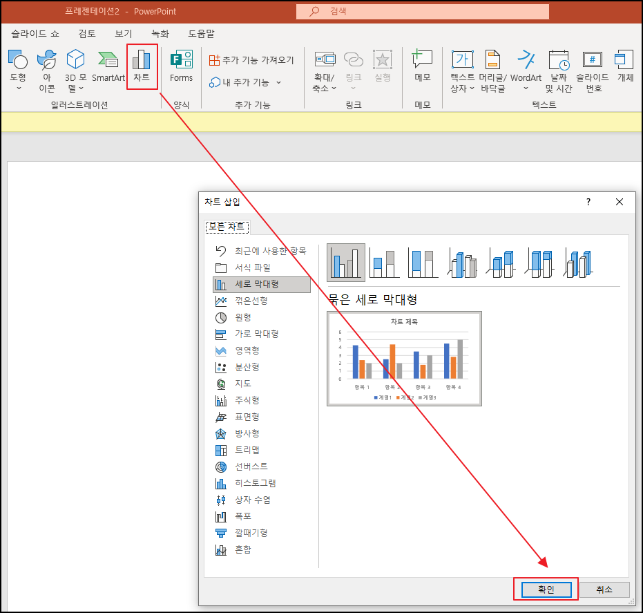 - 조치 완료 후 Office 프로그램을 재실행하여 차트 기능을 재실행하여 수정이 완료되었는지 확인합니다.