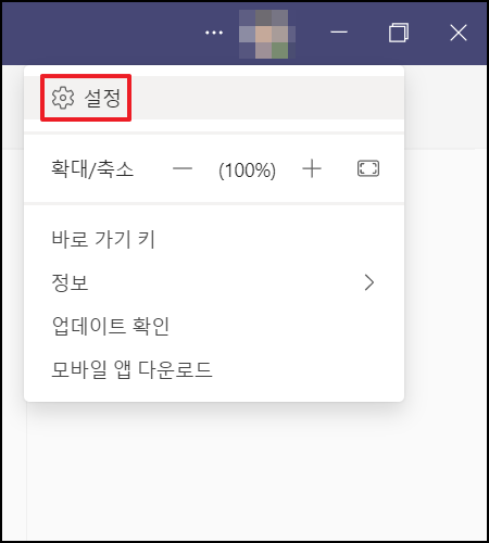 재시작 이후에도 동일한 증상이 나오는 경우 Teams(팀즈) 설정창을 확인해야 합니다.