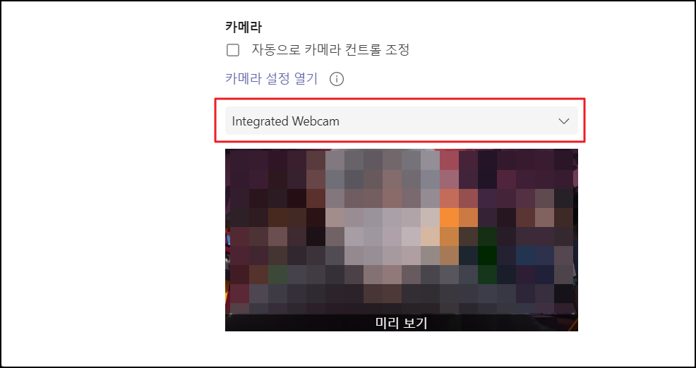 - 테스트 카메라에 자신의 얼굴이 나오면 팀즈에서 정상인식 중이라고 생각하시면 됩니다.